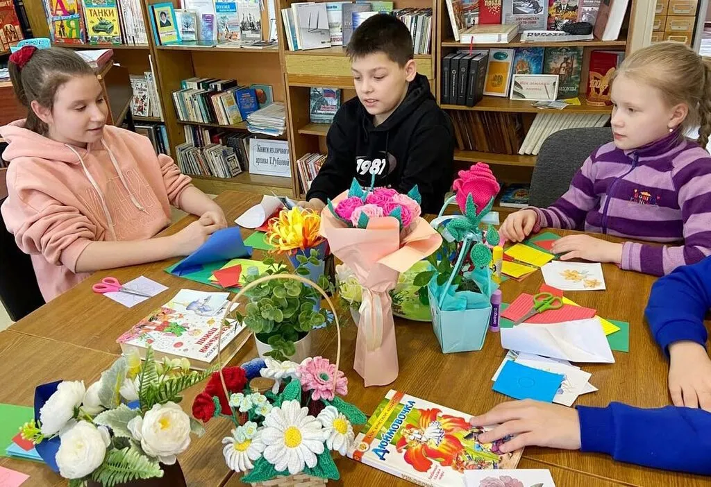 В преддверие Международного женского дня гостями библиотеки стали ребята детского дома «Радуга». Цветочный калейдоскоп «Весенний букет» был наполнен творчеством, весельем и магией.