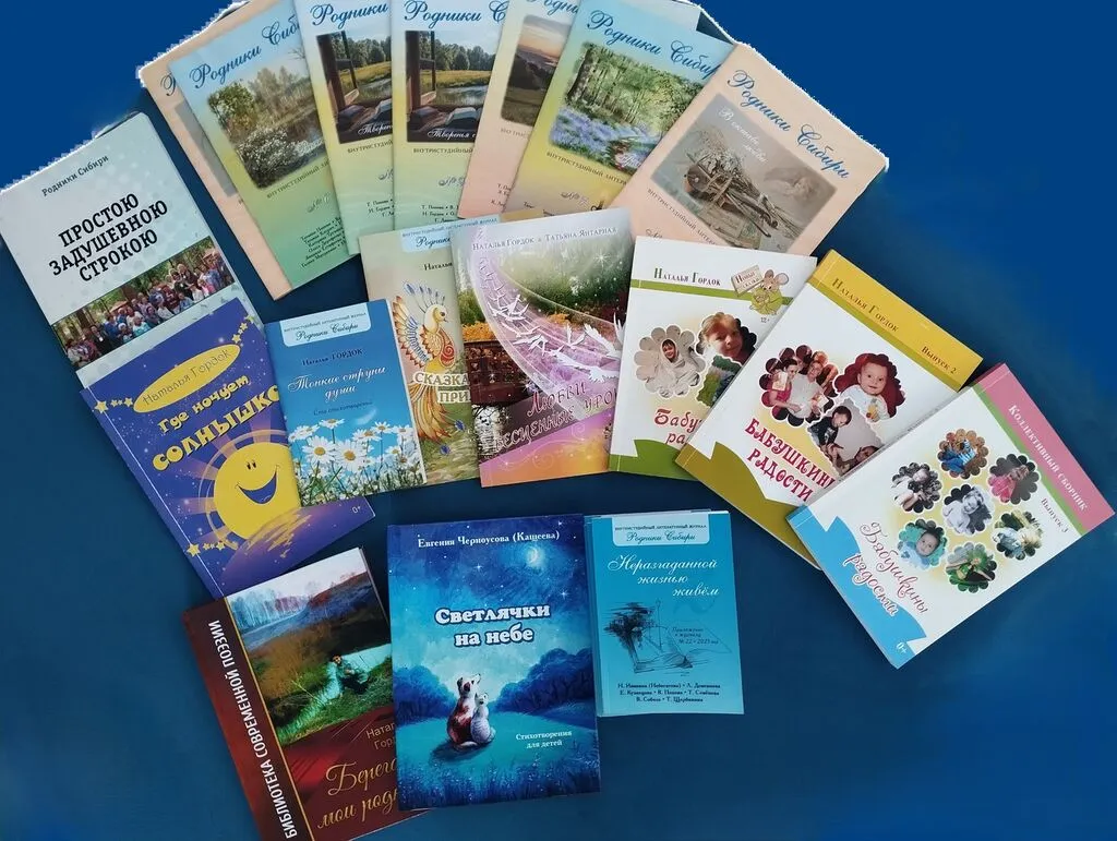 В числе переданных изданий — последние номера журнала «Родники Сибири», литературное приложение «Неразгаданной жизнью живём», а также авторские сборники: «Где ночует солнышко», «Бабушкина радость», «Берега мои родные», «Тонкие струны души», сборник «Светлячки» Евгении Белоусовой и совместная работа с Татьяной Янтарной «Любви бесценные уроки».