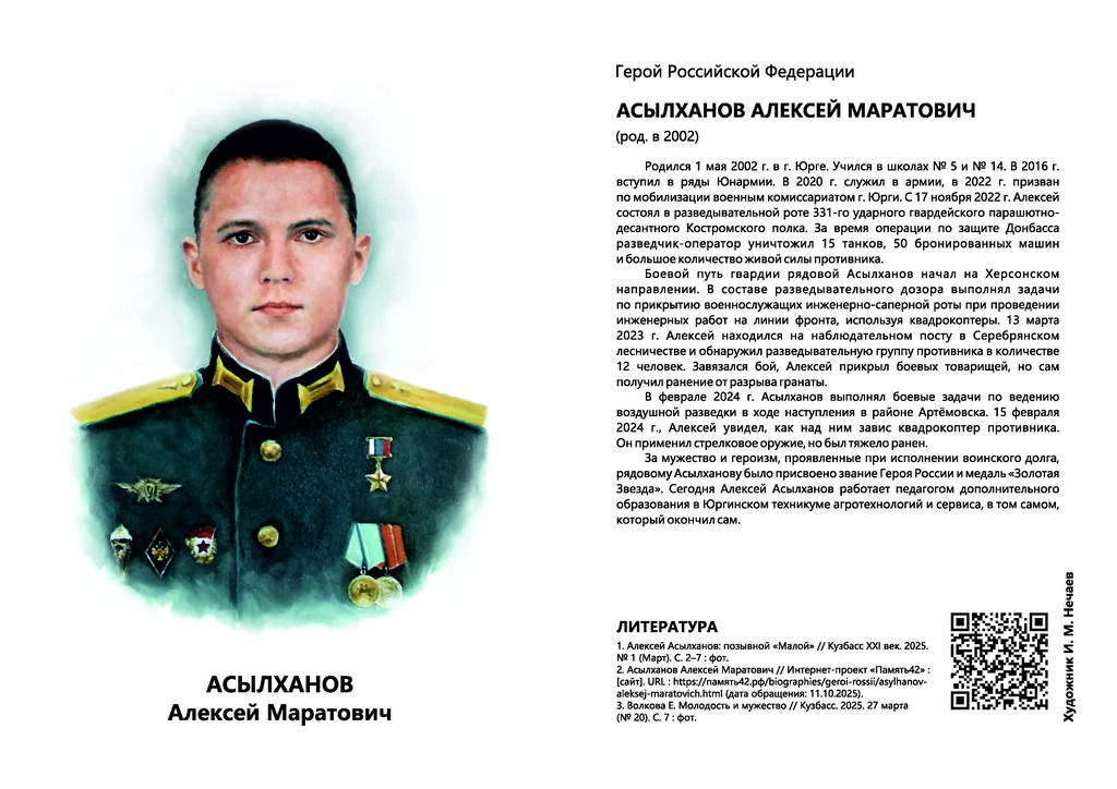 Это не только военнослужащие, но и летчики-космонавты, разведчики, ученые и даже спортсмены. Среди них – трое юргинцев: гвардии полковник Ренат Халиков, гвардии лейтенант Владимир Королев, рядовой Алексей Асылханов.